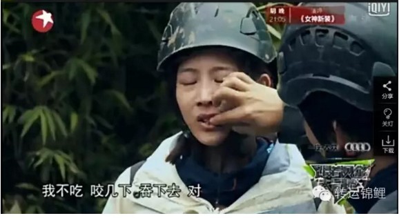 氣質女神張鈞甯雖然看似嬌滴滴,但如她所說她對工作很有野心,2015年10月她參加中國野外求生實境節目《跟著貝爾去冒險》,前往貴州叢林探險,在第1集就被製作單位要求生吃蚯蚓,她拒絕不成還被同伴直接拿蚯蚓塞進嘴裡,讓她當場爆哭。張鈞甯後來表示,她沒有女神包袱,只是不想殺生,所以吃完才會很難過,狂念阿彌陀佛。